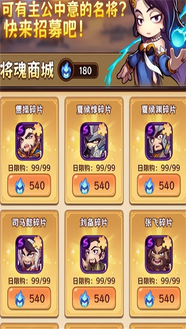之后多出来的碎片可以分解成为将魂 将魂可以在将魂商店中购买其他武将的碎片 一般S卡540将魂1片碎片 紫卡360 每日限购99片