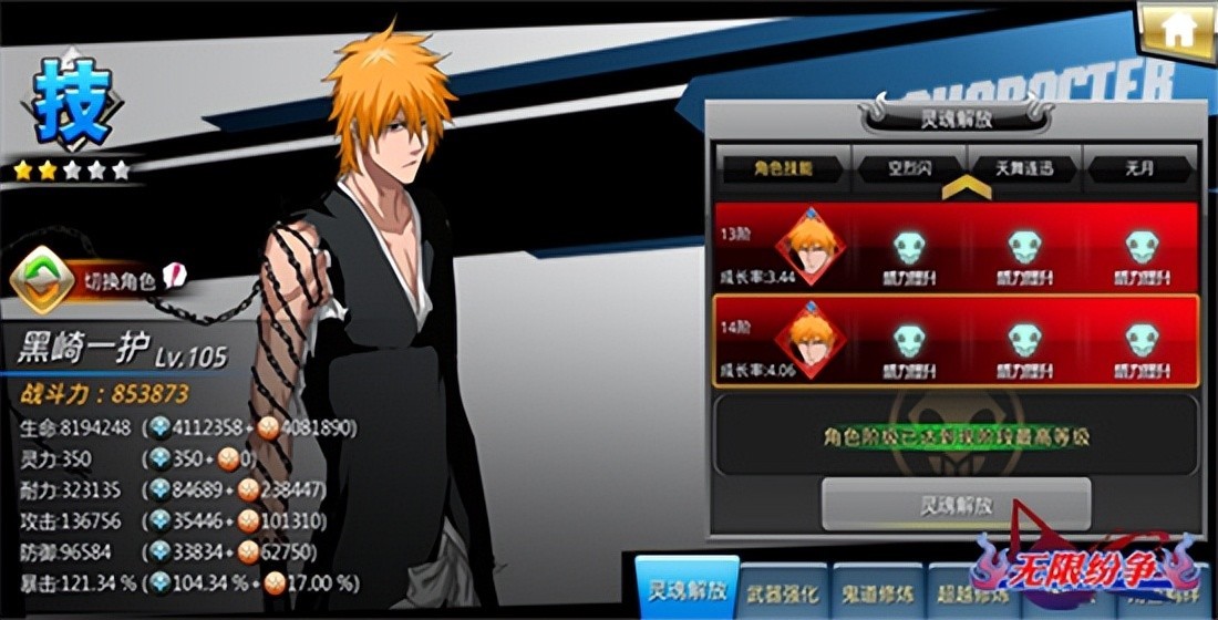无限纷争手游官方版是一款二次元风格的横屏格斗类手游,这款游戏以热门动漫《死神》创作而成,不仅将剧情进行了还原,还将一众人物进行了复刻,你可以在这里面看到黑崎一护、石田雨龙、虚白、蓝染、日番谷冬狮郎等角色,甚至官方还将所有人物在动漫中释放的技能也进行了极大程度的还原,致力为大家带来原汁原味的战斗体验。