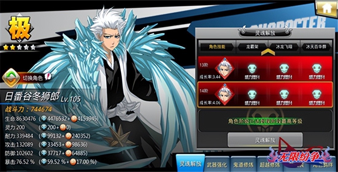 冬狮郎出身普通,完全靠着自身天赋与努力逐步成为尸魂界历史上最年轻的队长,自然也算得上真央灵术院的一枚著名学霸。冬狮郎拥有尸魂界最强冰系斩魄刀——冰轮丸,普通形态已经算是游戏中一流的控场角色,完全卍解形态更是顶级竞技场核心,再加上帅气颜值与华丽冰系特效,非常值得一试。