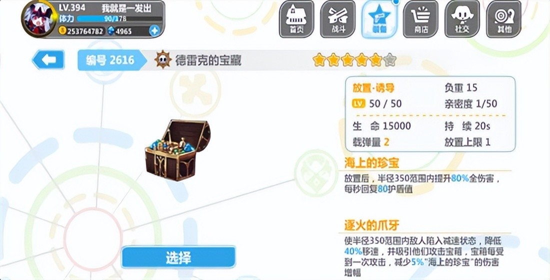 此件装备在往期活动中容错率应为极高,但是由于这次千肝敌人普遍增加了铁壁,该装备却只能放置一件,存在范围上限,反而导致这件装备的容错率变低了,可以通过海盗少女活动获取,获取难度非常低。