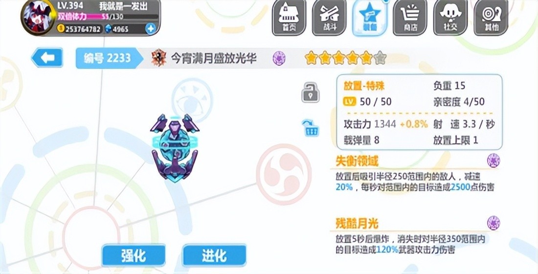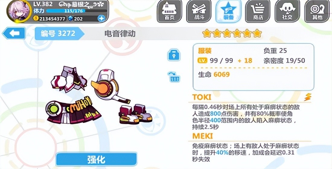 4、衣服,一技能为2.5秒启动40%加移速,2.5秒不动80%加伤,中等偏上的加移速和不太常触发的加伤,二技能加盾上限2000,可以应对生命上限减少关卡,并且还自带硬控buff,看起来还不错。不过这衣服可以借基友,所以就倒数二。(图为衣服)