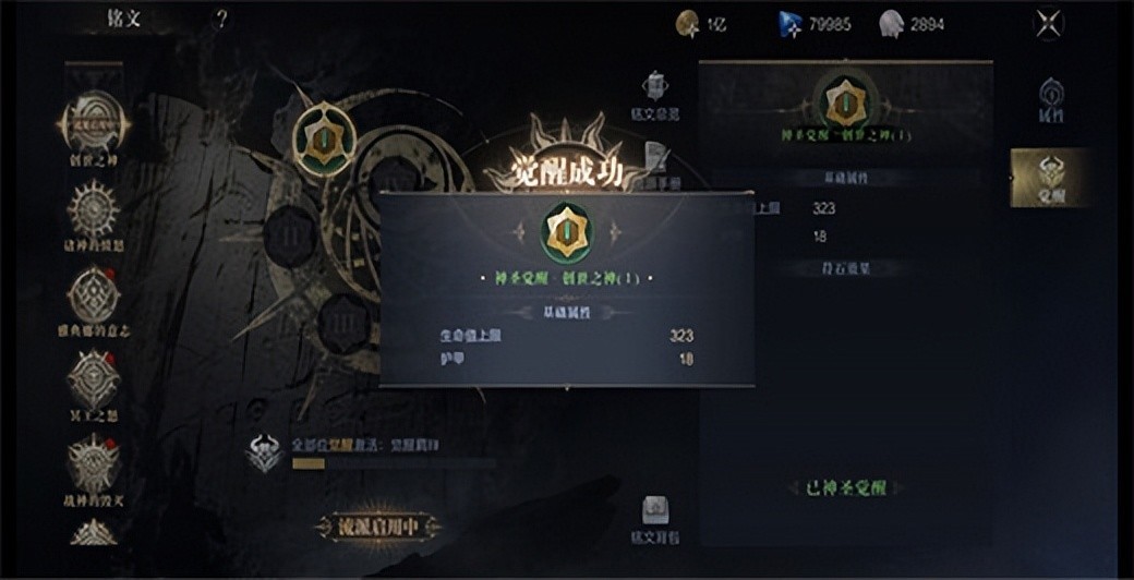 【铭文唤醒】:激活后的铭文可以进行唤醒。需要消耗同名铭文和“盖亚金尘”。
