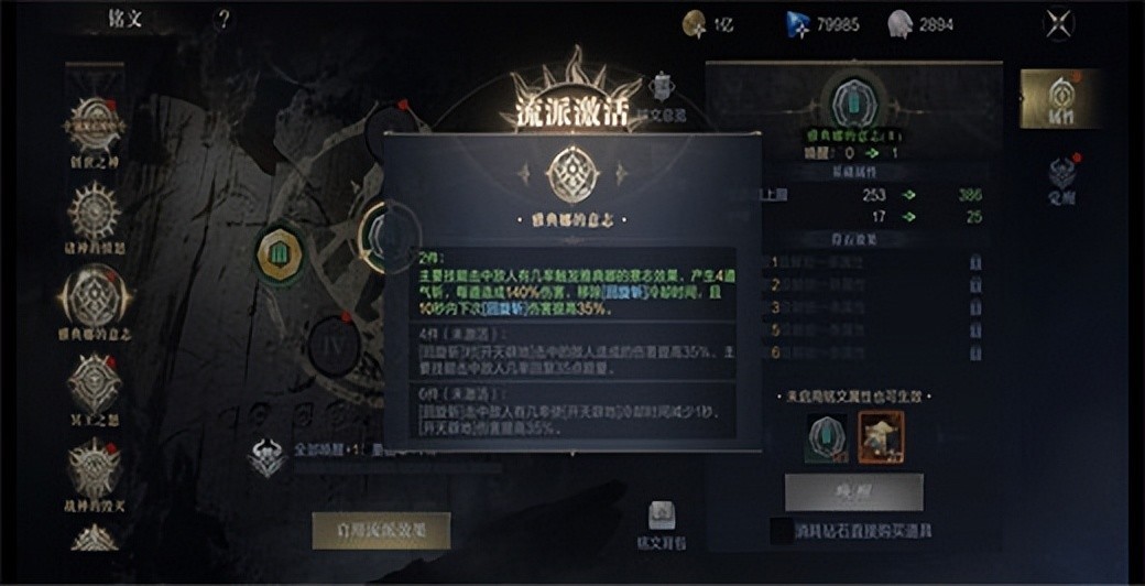 2、铭文主界面可查看当前已解锁和待解锁的铭文。已解锁的铭文可以通过“启用流派”进行切换。