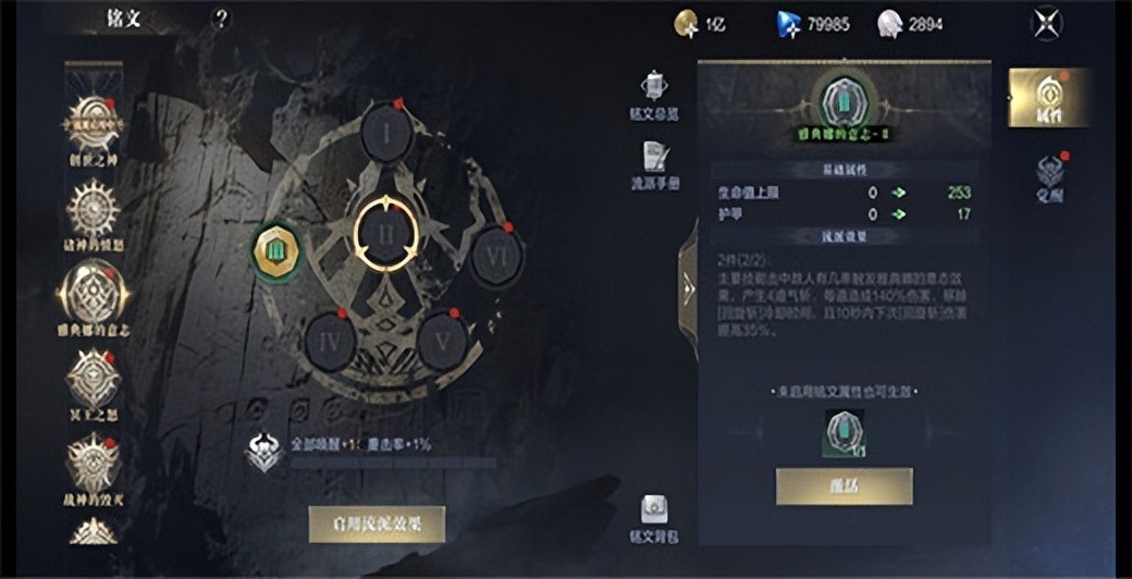 3、每套流派有五个铭文槽位。空槽位需要镶嵌铭文符石进行激活。