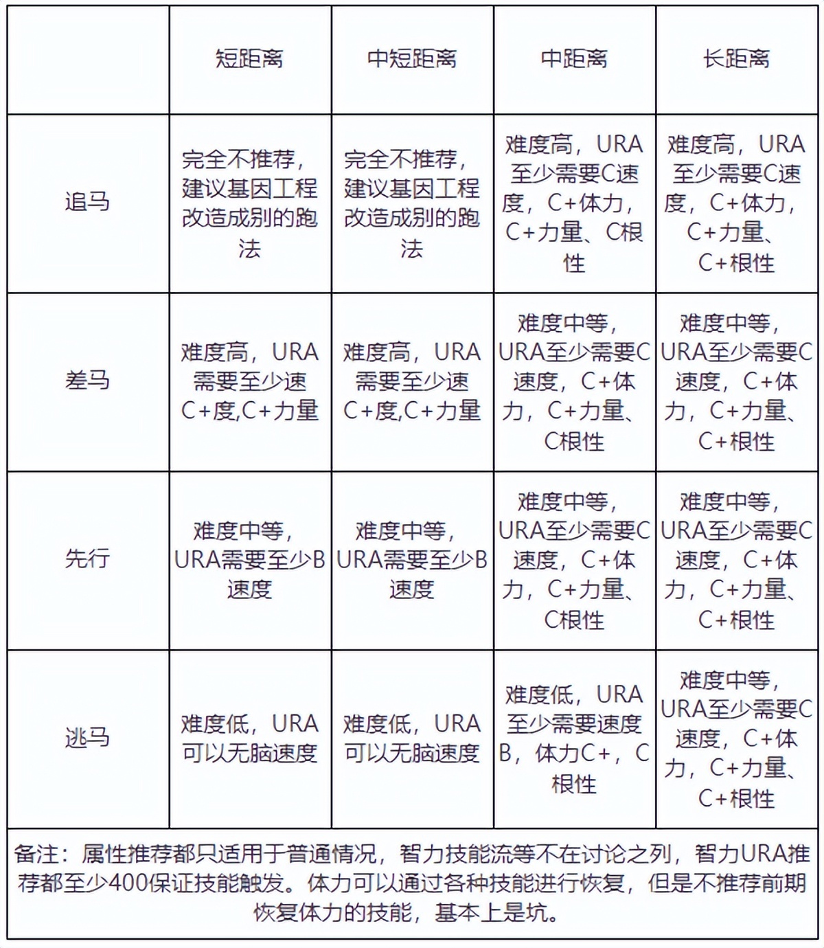 所谓因材施教,选对马匹,施以针对性训练,参加适宜的比赛才是赢得最终优胜的关键。在熟练掌握以上内容后,让我们回顾专业玩家们总结的战术适应性与距离适应性之间的相关性。