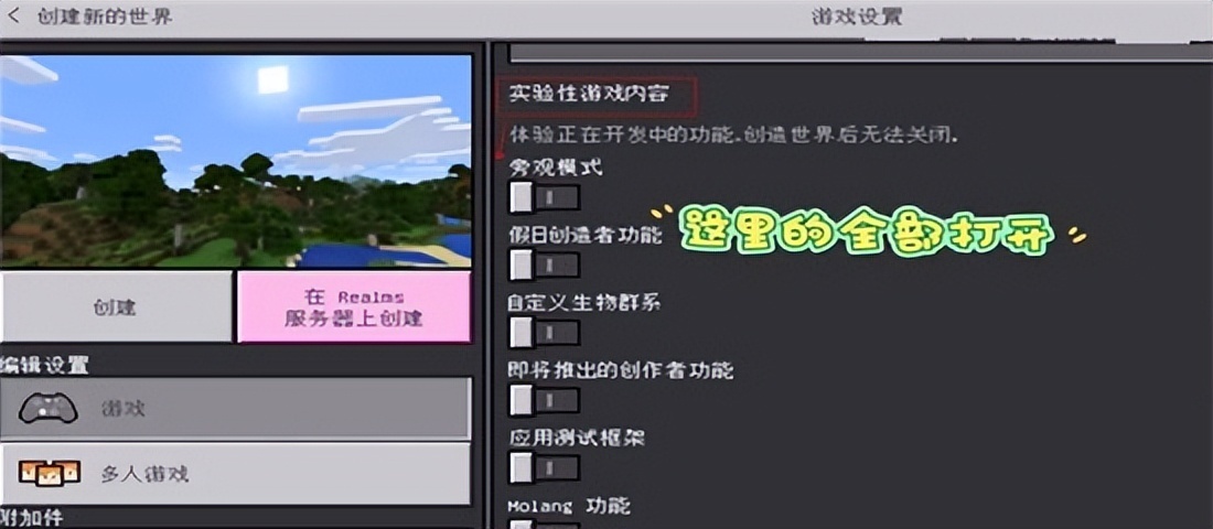 在我的世界珍妮模组手机版的设置中开启创造模式