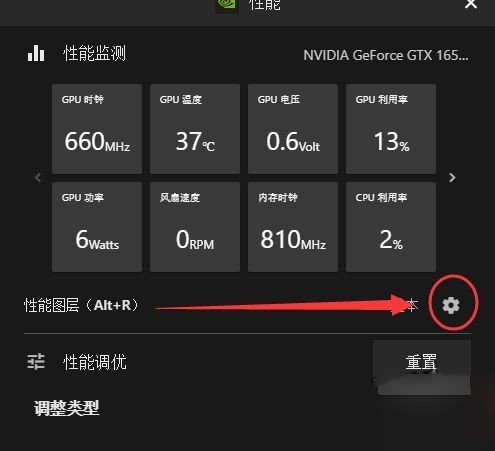使用Alt+Z键打开GEFORCE EXPERIENCE界面,选择性能设置。