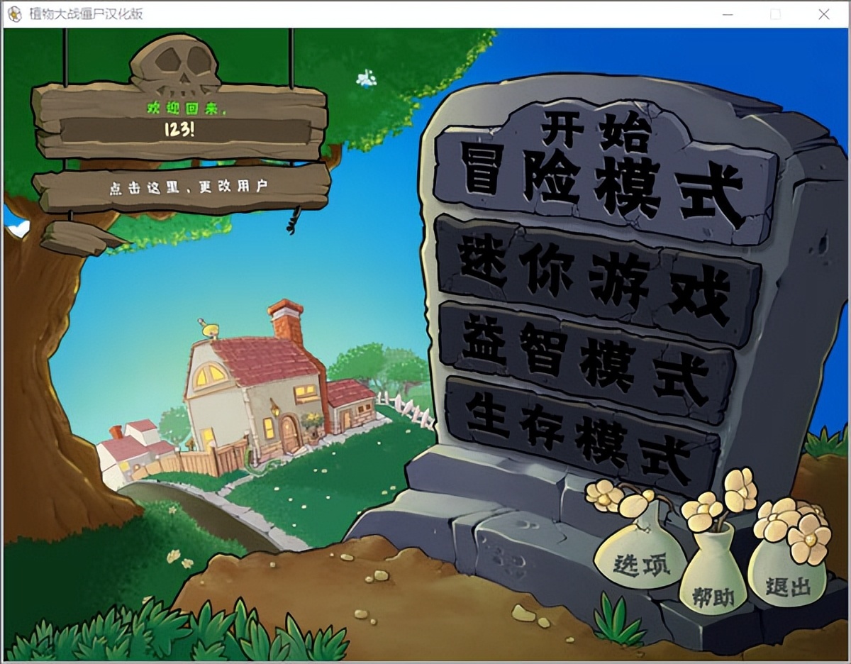 从本站下载解压游戏,双击PlantsVSZombies.exe开始游戏。