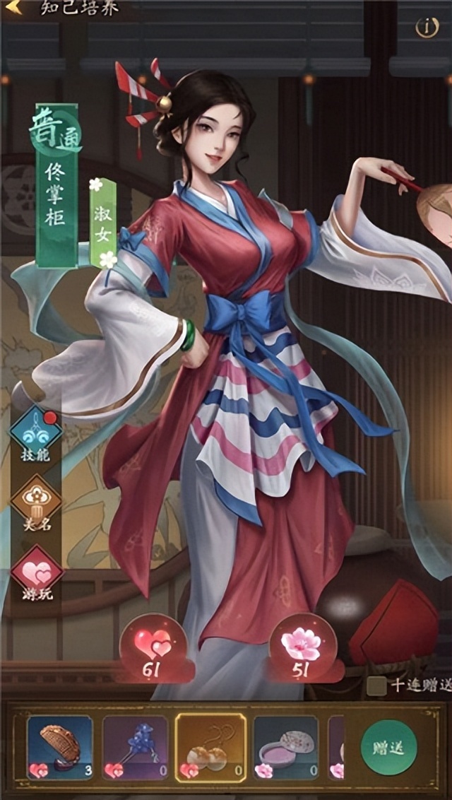 1、这个阵容前后会主要分别培养苗疆圣女,驯马师,马湘兰这三个挚友,而其中苗疆圣女,驯马师的美名都是谈心缘分值增加,是很强大的美名。