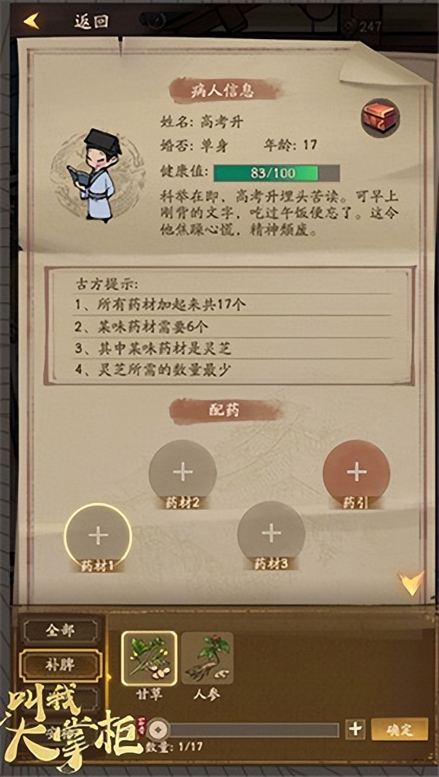 10、 药铺方面,基本上要玩的第一天就开了,每天三次宣传拉满。