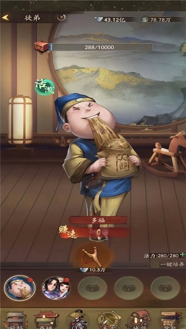 4、 培养徒弟方面,每次选最便宜的培养,徒弟没活力了就用活力丹拉满(必须这么做,否则平民玩家进度跟不上)。谈心的话如果见识卡了,那就用一下精力丹然后刷出来徒弟继续培养。记住,培养徒弟不是为了徒弟的赚速,而是为了见识,徒弟的赚速就别跟大佬争了。平民缺见识的,如果不用活力丹,赚速根本跟不上。