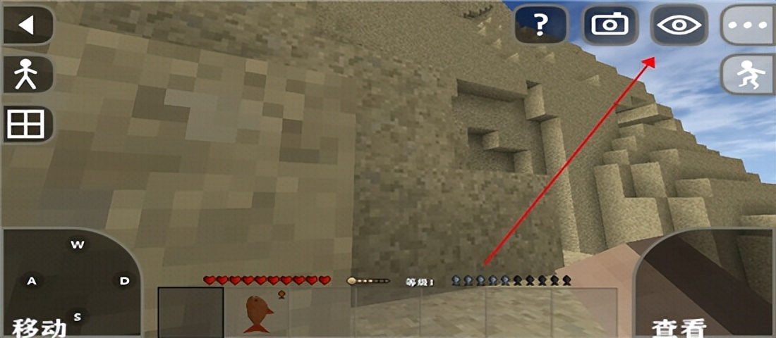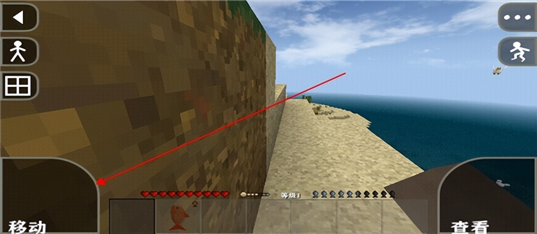 我们先熟悉一下操作界面,左下角是移动,遇到了台阶它会自动跳跃