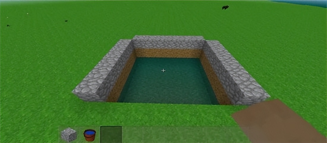 用方块围一块6×6的圈(只围三面),在圈内挖一个两格深的坑,底层填满水,再用泥土将整个水面盖住。