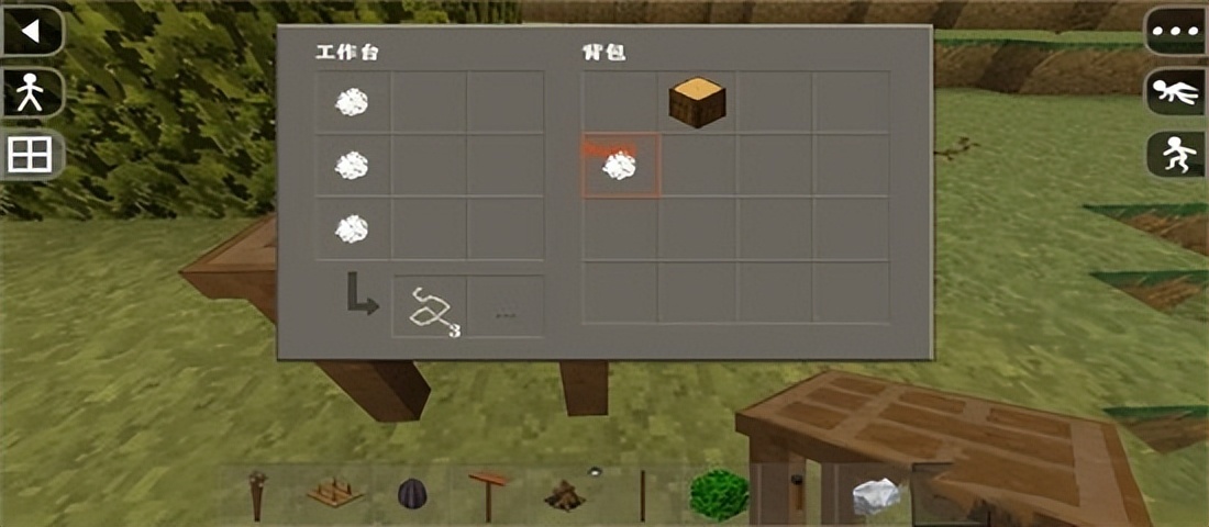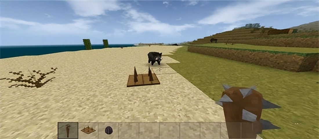俗话说得好,想致富,先撸树。有了原木就能做工作台从而制作更多工具,还可以烧成煤制作火把。具体方法游戏内有合成表,就不费话了。不要随便攻击母牛,牛很多时候都是成群的,公牛会攻击你的。