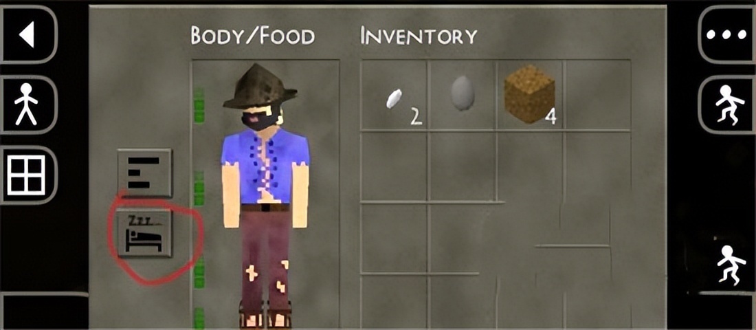 角色长时间不休息(睡觉)会疲劳,过度疲劳会陷入昏迷。无论白天黑夜,角色疲劳时都可以睡觉。睡觉只会加速时间流逝,并不会跳过睡觉时间。在睡觉过程中受到攻击或者点击屏幕都会让角色提前醒来。
