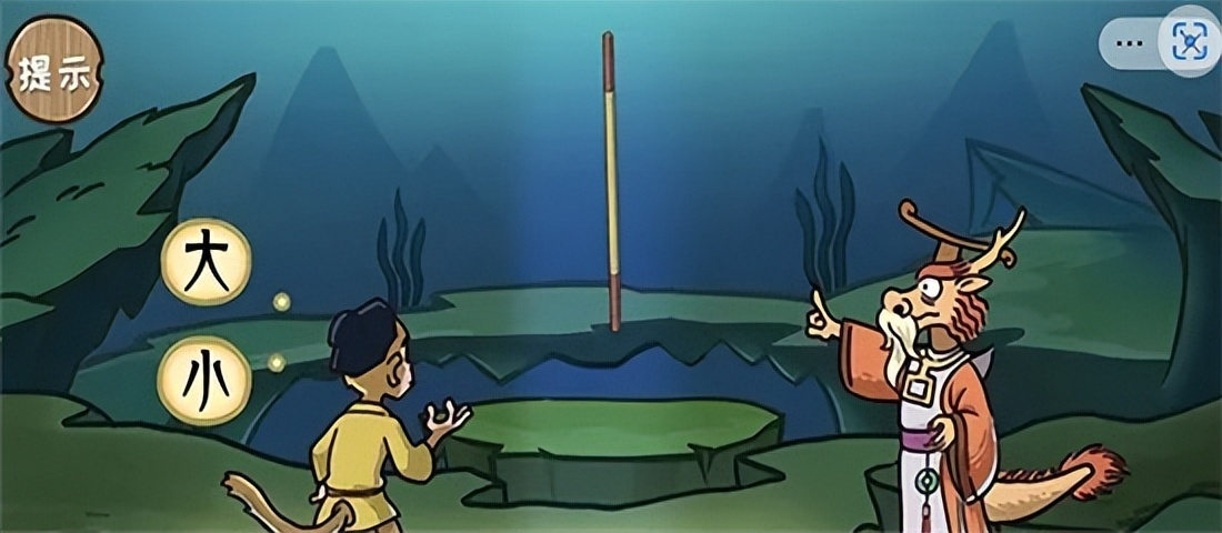 通关技巧:使用两根手指按住金箍棒往中间缩小即可帮助孙悟空找到金箍棒。