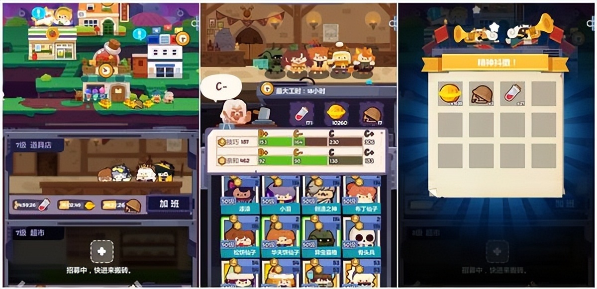 打工获取资源:解锁不同的店铺,让角色去打工赚取资源,同时注意打工中的角色无法同时进行探索。