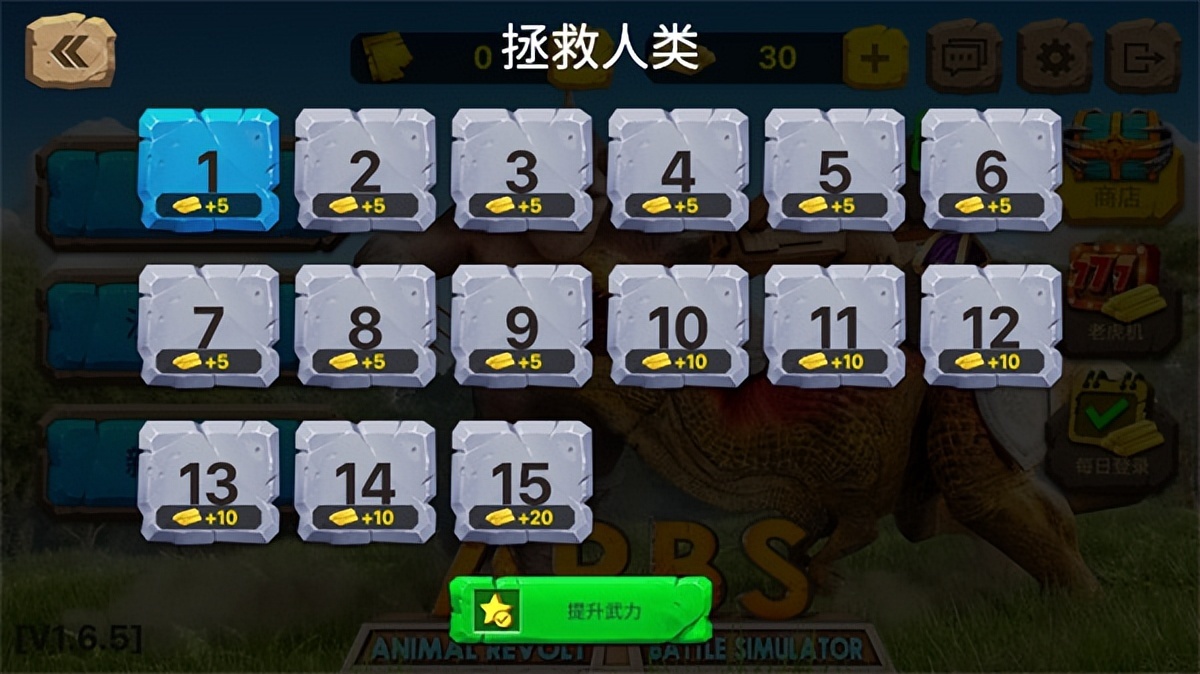 2、在动物战争模拟器MOD作弊菜单版的闯关模式中,玩家需先选择章节;