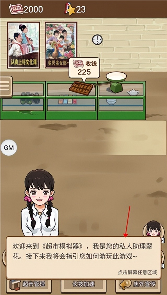 进入超市模拟器手机版游戏之后,会有助理教你怎么玩