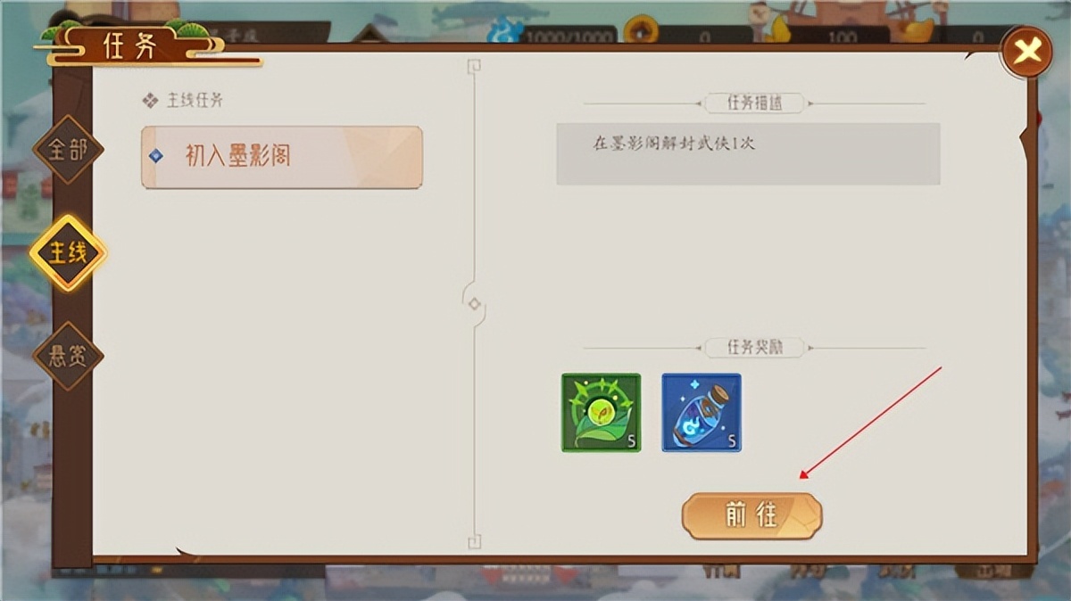 通过选择主线任务并点击“前往”,玩家可以开始他们的游戏之旅。