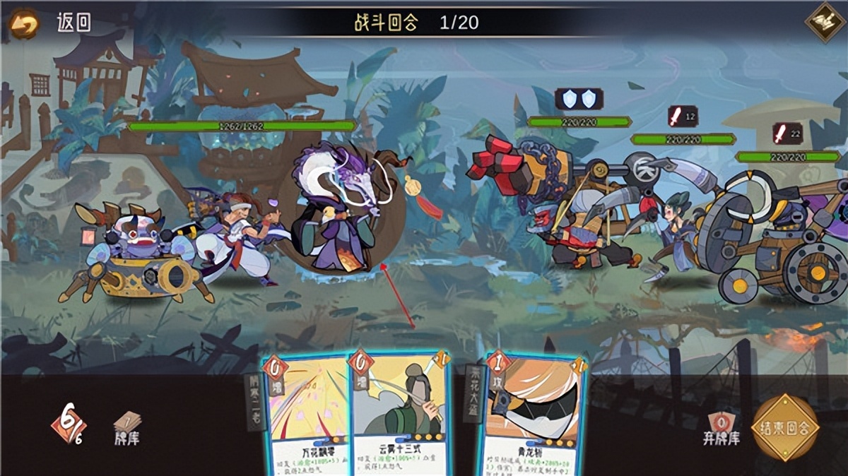 游戏的卡牌分为两大类:增益类和攻击类,合理使用这些卡牌,平衡行动力的消耗,是获胜的关键。