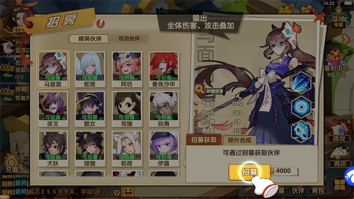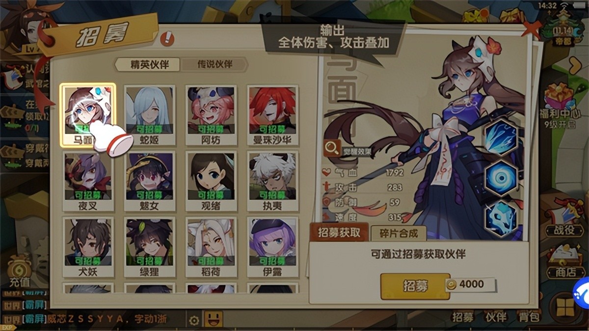 3、进入招募页面,选择想要招募的伙伴;