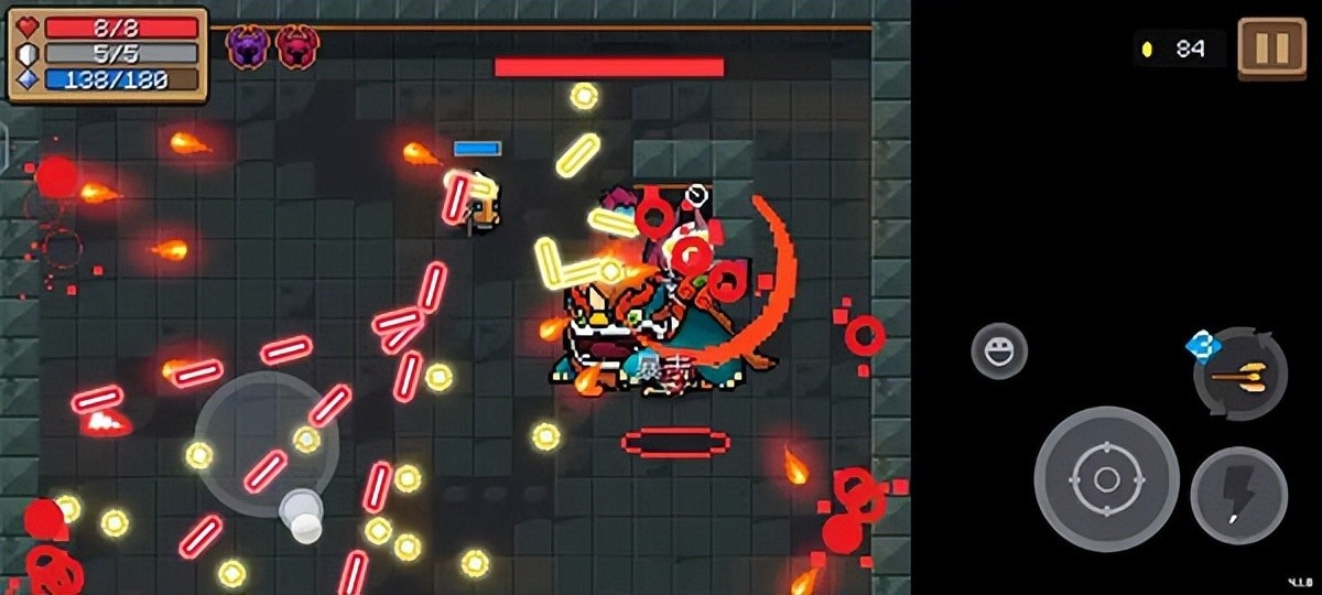 在元气骑士破解版全无限内置修改器版中当角色护盾受击后为零且角色掉血时,自动眩晕附近约三格内的怪物,眩晕时间约为两秒。