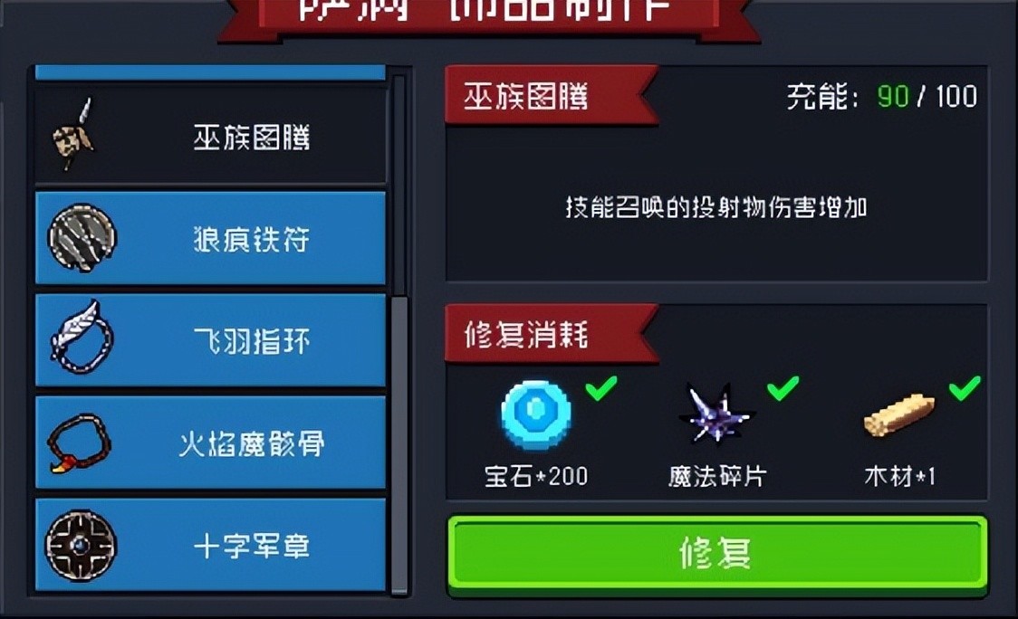 其中魔法碎片一个对应修复20耐久