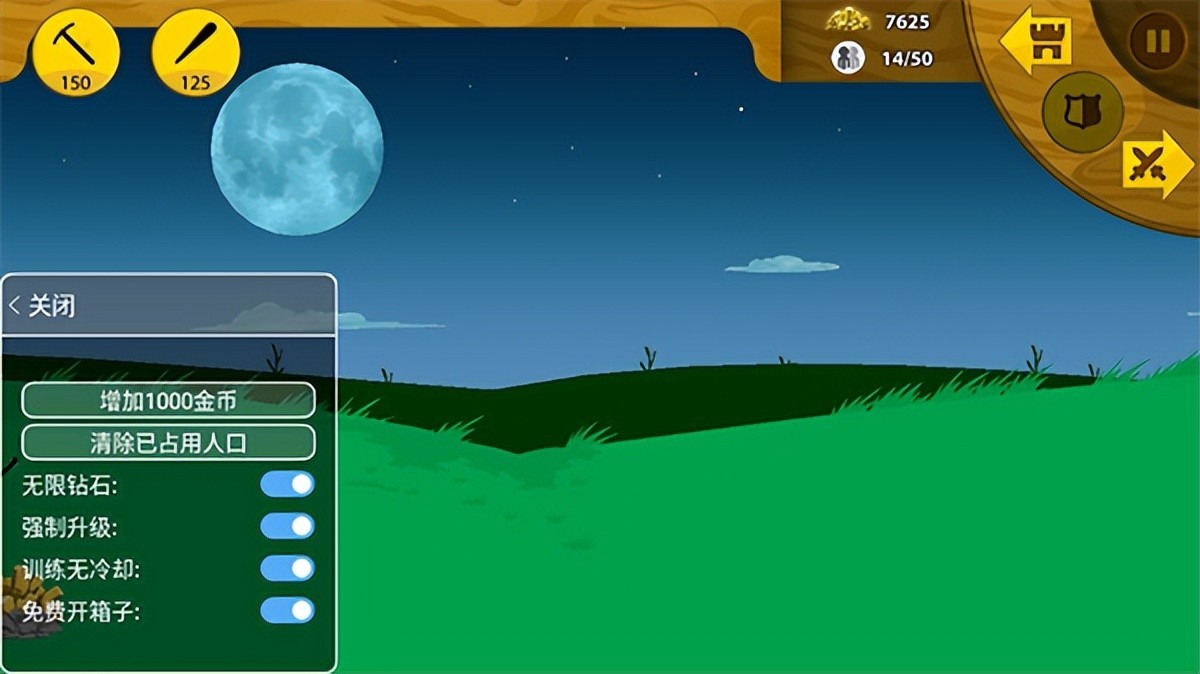 3、玩家带领你的火柴人军队发起各种挑战,除了战斗以外还可以建造单位,开采黄金。