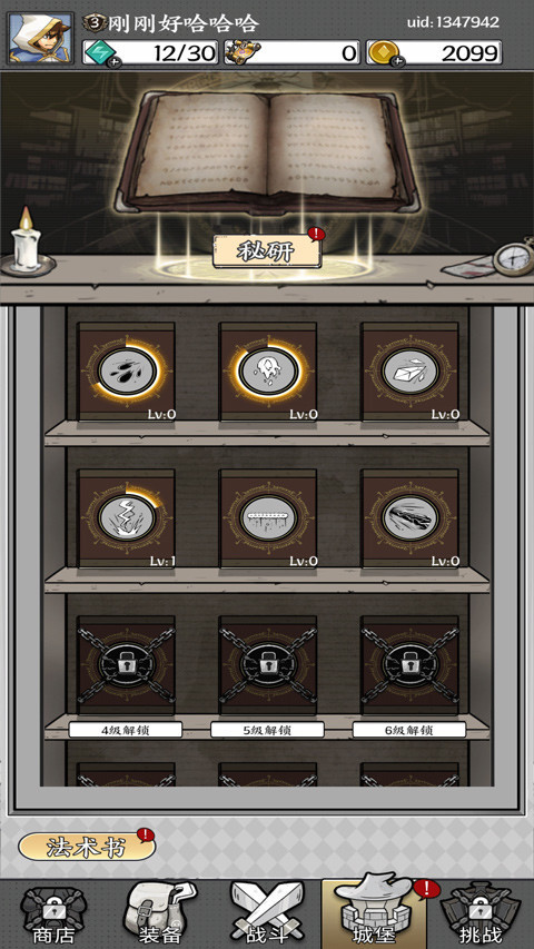 4、使用金币升级武器和研究城堡内的法术。