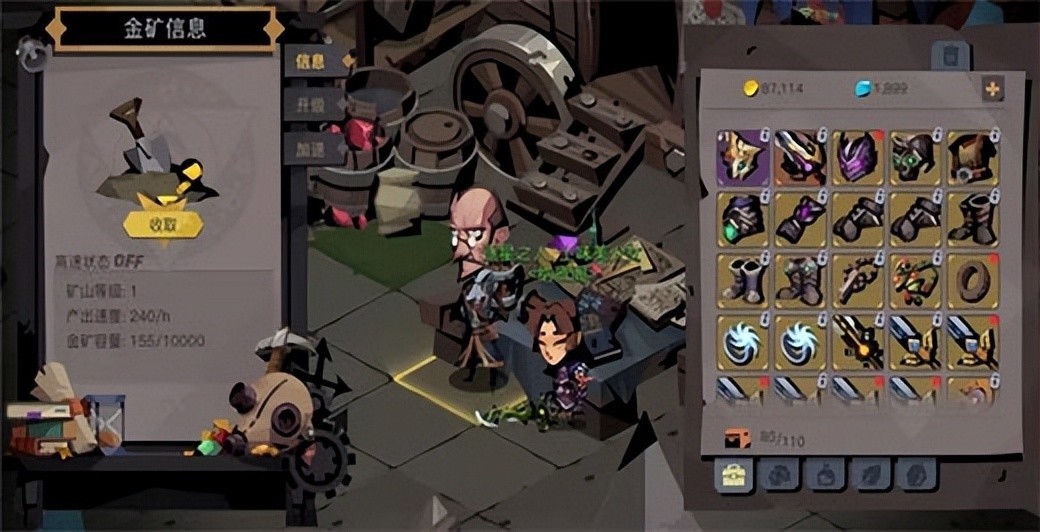7、如果囊中羞涩没钱升级,却又缺金币急用,金矿加速了解一下!提交一定量的材料(符文工坊是装备)就可以激活金矿的高速状态啦。低级材料没地方花,先怼进金矿再说!
