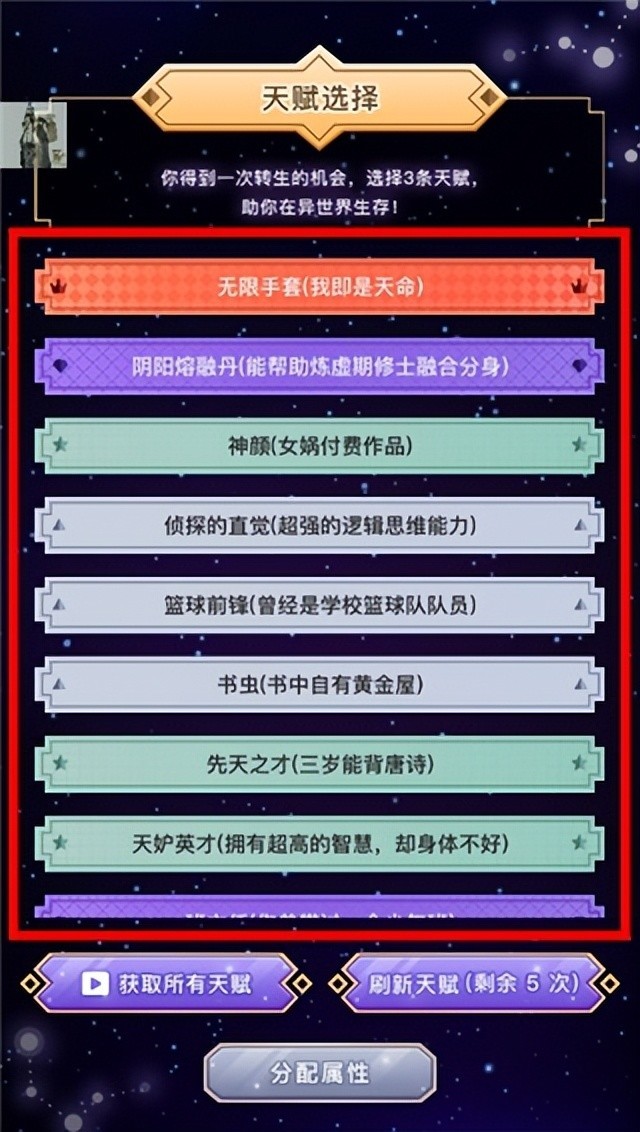 2、不同的天赋选择会对带来怎样的世界,虽天命所赐,却事在人为。