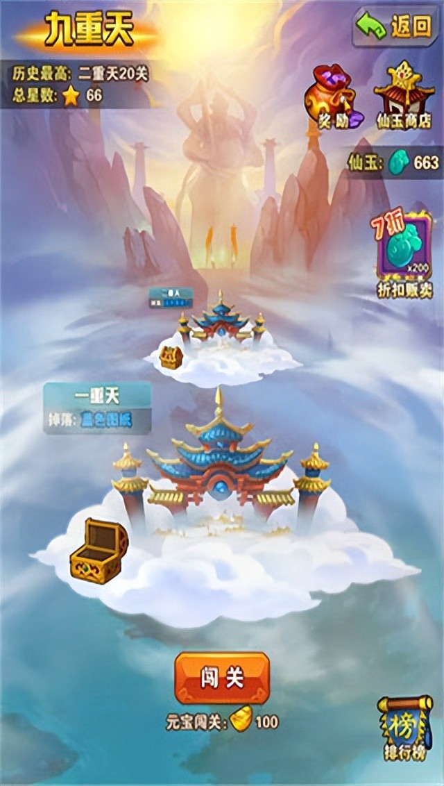 1、小星星大威力,上面说到在保证通关的情况下,尽量挑战高难度的关卡,其实是为了收集更多的星星,还会获得更多的仙玉。星星是做什么的,其实挑战一次九重天就知晓了,在九重天中,每三个关卡之后就会有宝箱和buff关卡,而星星就是用来在buff关卡中购买强力buff用的。所需星星数越多的buff,属性加成就越高呢!