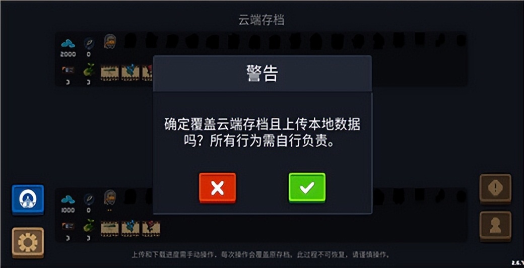4、需要注意的是,云端存档只要上传或者下载成功后,原有的存档会被覆盖,找不回来哦