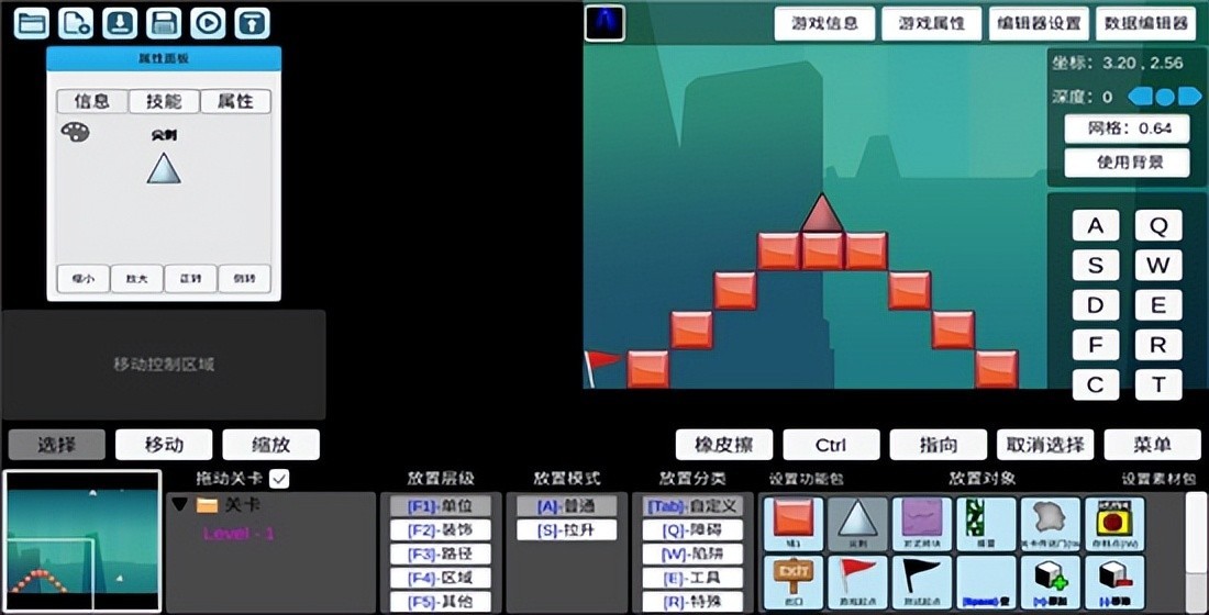 还能测试当前创建的关卡游戏哦