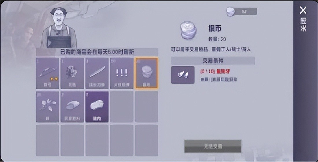 六、加工兔肉后卖出(需要盐,只能探索获得,和餐馆老板对话后开启)