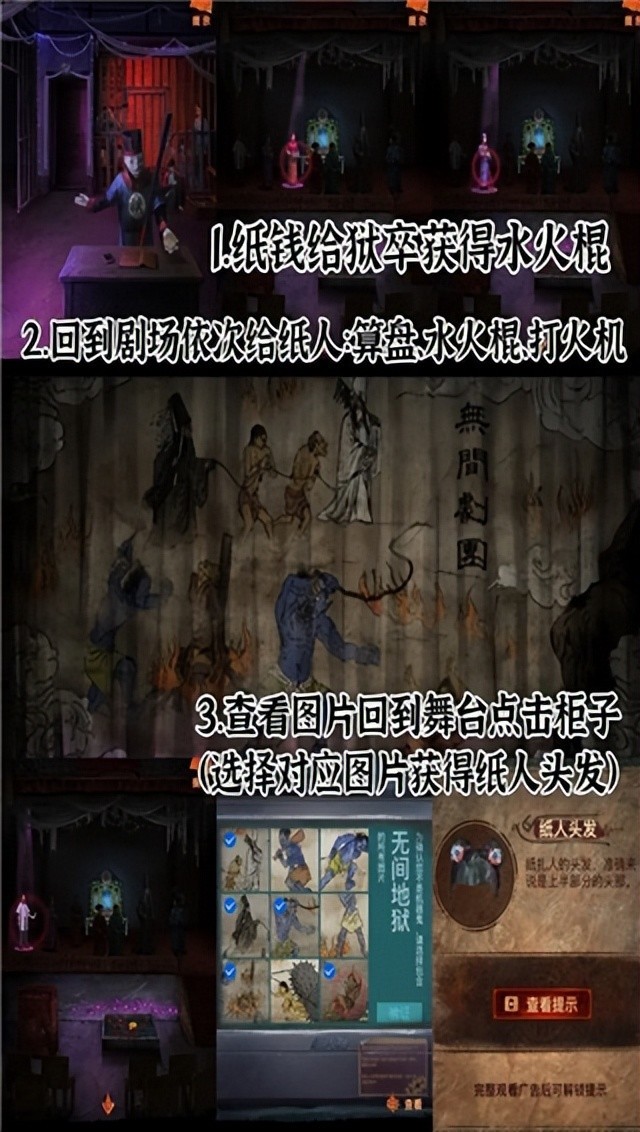 纸嫁衣7卿不负官方版是一款微恐的解谜类冒险手游,游戏整体画面以暗黑风格展示,玩家将跟随着主人公来到一个充满诡异的世界之中,你需要利用初始的道具书籍来进行解谜,每一页的上方都会有相关的提示,你需要结合书籍中的内容,以及场景来进行解析,找到相关道具,与场景中的NPC进行互动,关键时候,你需要通过滑动道具的方式来进行解谜,成功后才能继续探索,如果失败了的话还会扣除玩家的血量哦。当然了,在纸嫁衣7卿不负官方版中如果你实在找不到线索或者是道具,还能使用界面右上方的提示功能,它会告诉你当前场景的线索在哪个地方,还有一个最直接的方式就是点击NPC,界面中会有相关的提示指引你。