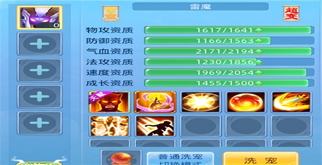 使用超级宝宝丹可以洗出超变满资质的宝宝,若是普通洗练后续也可以使用宠物资质丹提升宠物资质,使用龙骨资质丹提升资质上限