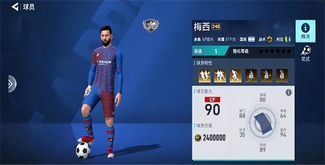 梅西:拥有传奇职业生涯的他,在盘带上的造化已半步登神,普卡就拥有96的盘带和93的控球,是许多边锋遥遥不可及的存在。虽然速度并不高,但爆发力还是很好的。95的顶级平衡让他在带球时,面对任何身体对抗都能够占据上风。91的短传和90的长传,让梅西在回撤组织中能够担任核心的支点。90+的射术,远射,优秀的射门力量,让梅西的射门进球得分率显著高于其他球员。梅西的任意球在历史上也是数一数二的。如果你需要一个C位球员,选择梅西是再好不过的。