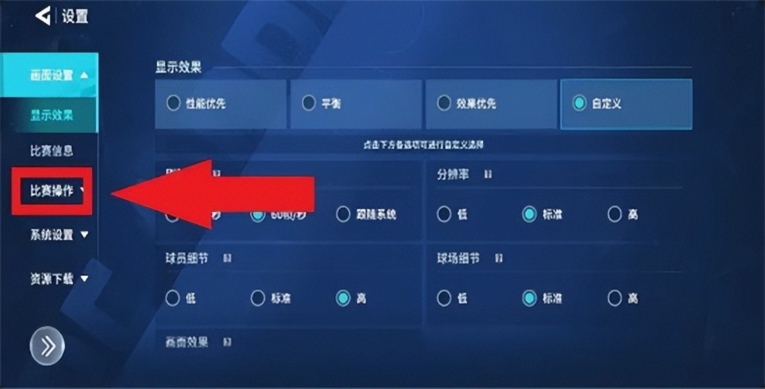 设置里左侧栏点击“比赛操作”,