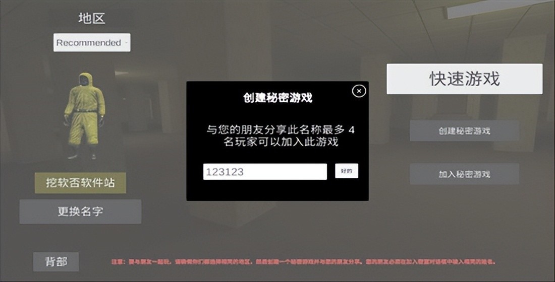 输入房间密码即可创建成功,让你好友输入密码就能进入房间了(注意:双方需要选择同一服务器才能一起游玩)