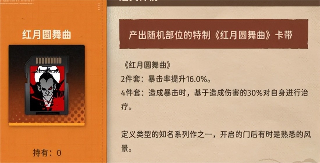 净天、音希、铣刀等自带暴击c可以使用红月圆舞曲4件套增加续航能力,毕竟前期各种越级挑战奶还是非常紧张的,前期使用2暴击+2攻击,音希可以使用2暴击+2暴击