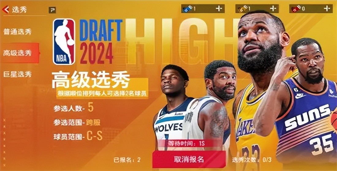 高级选秀卡用白嫖来的钻石,去商城购买高级选秀,每次5个人齐能开选。每个人有两次选球员的机会,而且有机会签到橙卡球员,运气好的话,一局签个橙卡+潜力紫卡,美滋滋!