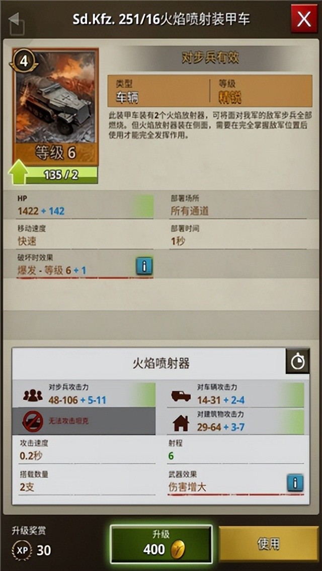反甲不错的小车,对人也能刮刮痧。血量之类都不错。升级车场就完了。